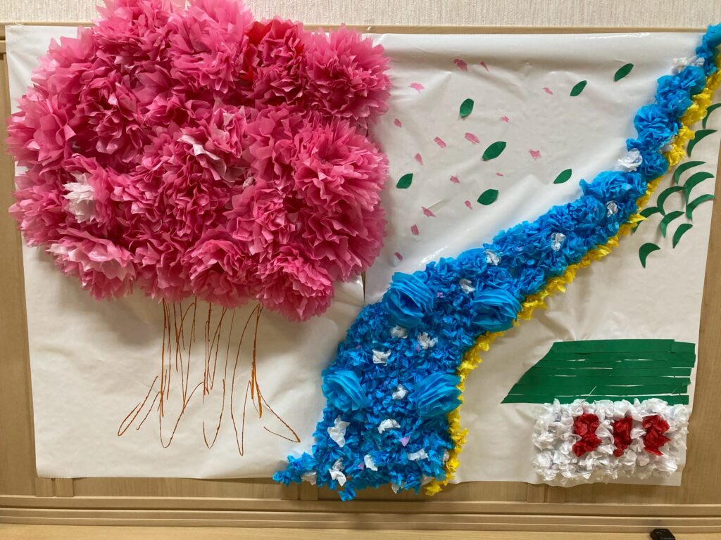 ホームで作ったお花紙の桜も完成し、満開になりました🌸